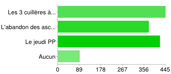 Un tiers des personnes interrogées sont en stabilisation depuis plus d’un an. La moitié respecte les engagements à vie (son d’avoine, abandon des ascenseurs, marche quotidienne et jeudi pp), ont maintenu leur juste poids et juge très efficace le régime Dukan.