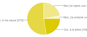 J'ai remarqué, en traînant les bottes sur les fils du forum, que certaines croient, en toute bonne foi, suivre le régime uniquement en picorant des recettes çà et là. Ce serait intéressant de corréler le succès du régime (dudus stables en stab) avec la lecture de la méthode. je pense que l'on serait surpris du résultat.
