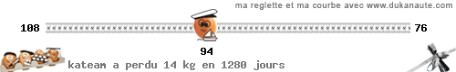 Tu vas voir ... ici y a tout ce qu'il faut ! Sur le temps on craque, on se lasse mais je peux certifier que si on ne lache pas l'affaire, on perd du poids. J'ai perdu les 20 premiers quasiment "les doigts dans le nez" ..... Maintenant ça ralenti, c'est plus long mais ça baisse toujours malgré les craquages (parfois), les erreurs d'interprétation (ça arrive) ... Mais ça marche ..... et surtout le sport .. même si ce n'est que marcher trente minutes.