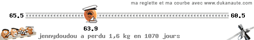 hier, mon mari étant parti en voyage de travail, j'en ai profité pour faire ma journée PP en avance (galettes, jambon de dinde, quiche au jambon dégraissé, bio flan, cordeau bleu, crepe dukan nature), avec 4 cachets de BOP et des thés et cafés et beaucoup d'eau, et résultat - 700g ce matin. Du coup cette semaine je vais refaire une courte croisière améliorée ou une conso allégée histoire de m'alléger ... Et aussi reprise du sport!!