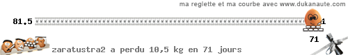 la tienne aussi Nicky j'adore elle m'a bien fait rire ben oui il faut que l'on s'accroche car les mois passent vite et nous avons nos objectifs.... et il va falloir avancer dans le régime et reculer dans le poids non??