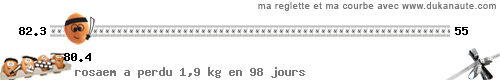 Rosaem tu perds tous les jours c'est bien, mais si tu stagnes 2/3 jours il ne faudra pas arrêter le régime, c'est normal qu'on stagne, c'est pour mieux repartir, de toute façon, j'ai appris à mes dépens qu'il ne fallait pas se focaliser sur le poids, car il n'y a pas de mystère, si tu suis vraiment le programme tu ne peux pas regrossir, enfin je veux dire que ce n'est pas de la graisse que tu prends, simplement de l'eau que tu n'as pas éliminée, alors patience!!!!!!!!!!!!!!!! je dirais que c'est le mot qu'il ne faut jamais oublier lol on en a toutes conscience.