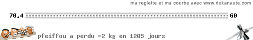 Posté le 20/06/2013 à 17:45 de rien! bon courage pour la suite! Le profil de cet utilisateur est privé. Il ne souhaite pas communiquer sa courbe et ses mensurations. |