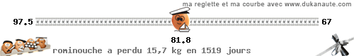 Bonjour à toutes, heureuse qu'il y ait de nouveau du monde. Alors valy, mon bébé side aura 7 mois lundi. Il se porte à merveille et commence à rouler partout. Le 4 pattes ne va pas tarder. Sinon, question Dukan, après ma semaine de vacance, j'avais repris un peu malgré avoir limité les dégats. Mais je suis repartie vers le bas. Donc tout va pour le mieux. Reste plus qu'à me stabiliser concernant le boulot. J'attend des réponses et si rien de positif, je continuerai mes investigations. Sur ce, je vais au lit car je suis fatiguée. J'ai mes parents avec ma grand-mère qui sont en week-end à la maison. Donc plus de remue-ménage et moins de sièste.