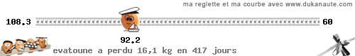 Ce matin -900g !! Contente! (J'ai pas encore pu mettre ma Réglette à jours je ferai ca en rentrant du travail)