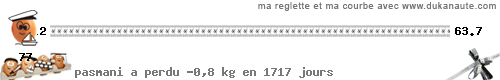 en attendant, j'ai regardé, c'est le poid que je faisais le 5 mai.... et j'ai mis 2 mois à l'epoque pour passer de 69.1 à 63.5 alors à mon avis, cettte fois ci, il me faudra suremetn plus longtemps (à moins que mon cerveau fasse un "reset" et n'aipas la mémoire d'une perte de poids dejà annulée !!!!) bref, en gros, si je suis à 65 à noel, je serai RAVIE !!!!!