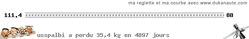 je vais m'obliger à faire PP tous les lundi et tous les jeudis. + mon son tous les jours. c'est une reprise 50 % dudu, 50 % ww... je sais, la perte sera ralenti, mais en fait je veux juste limiter les degats là et ne pas remplacer un vide (mon mec) par un autre manque (manger !!!) donc je vais gerer une conso améliorée....